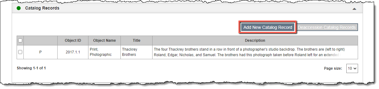There are two ways to add new catalog records to an accession: from the catalog record screen or from the accession record screen. It is also possible to link an existing catalog record to an accession. For more information about options available when adding new catalog records, see Catalog Record Add Options.