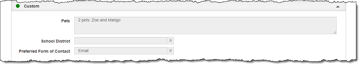 The Custom Accordion displays any custom fields you have set up. For more information about setting up custom fields, see Custom Fields.
