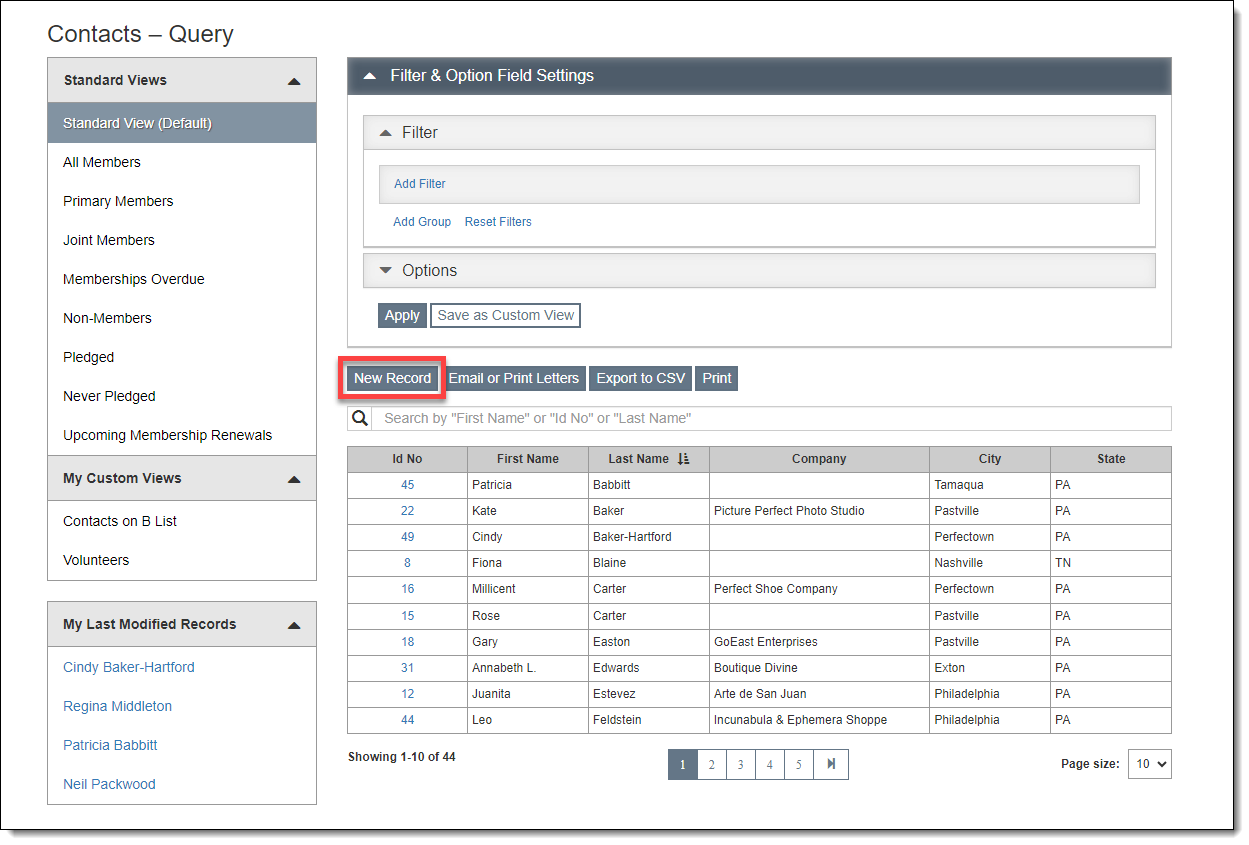There are two ways to add a contact record: from the Contacts Query screen or from an existing contact record.