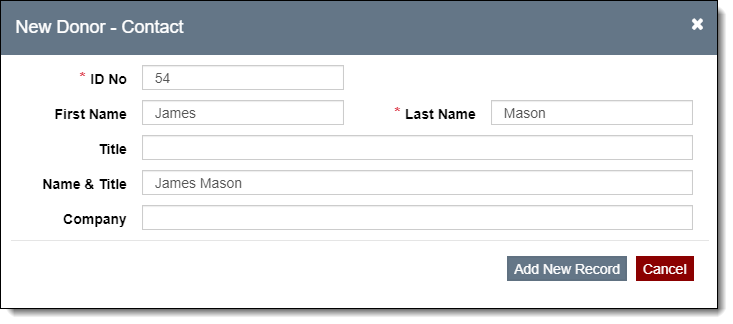 For adding other development-related records, see the individual topics: Donations, In-Kind Gifts, Dues Payments, Pledges, Volunteer Information, and Campaigns.