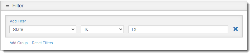To add additional filter statements, click "Add Filter" again.