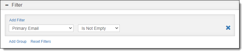 Primary Email | Is Not Empty