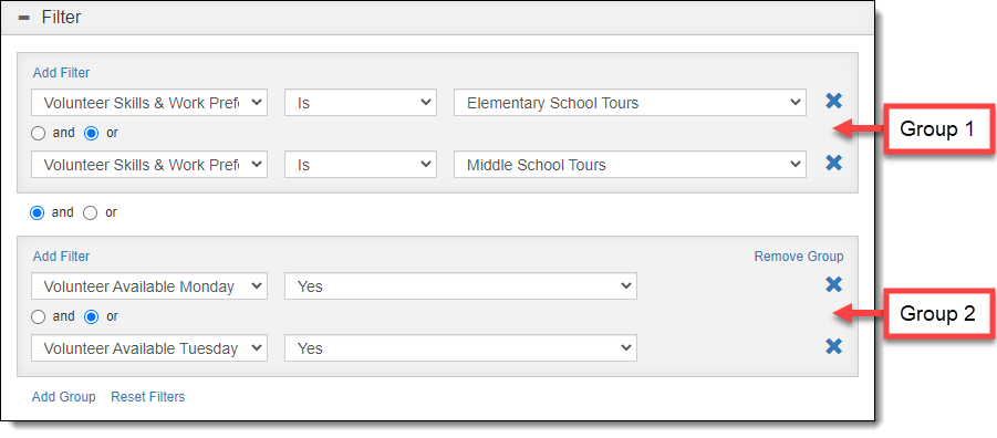 Advanced Queries using Filter Groups