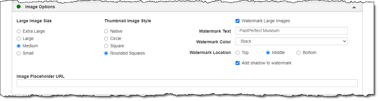 You can also apply a text watermark to the large images on your public site. Applying this watermark will not affect the images within PastPerfect.