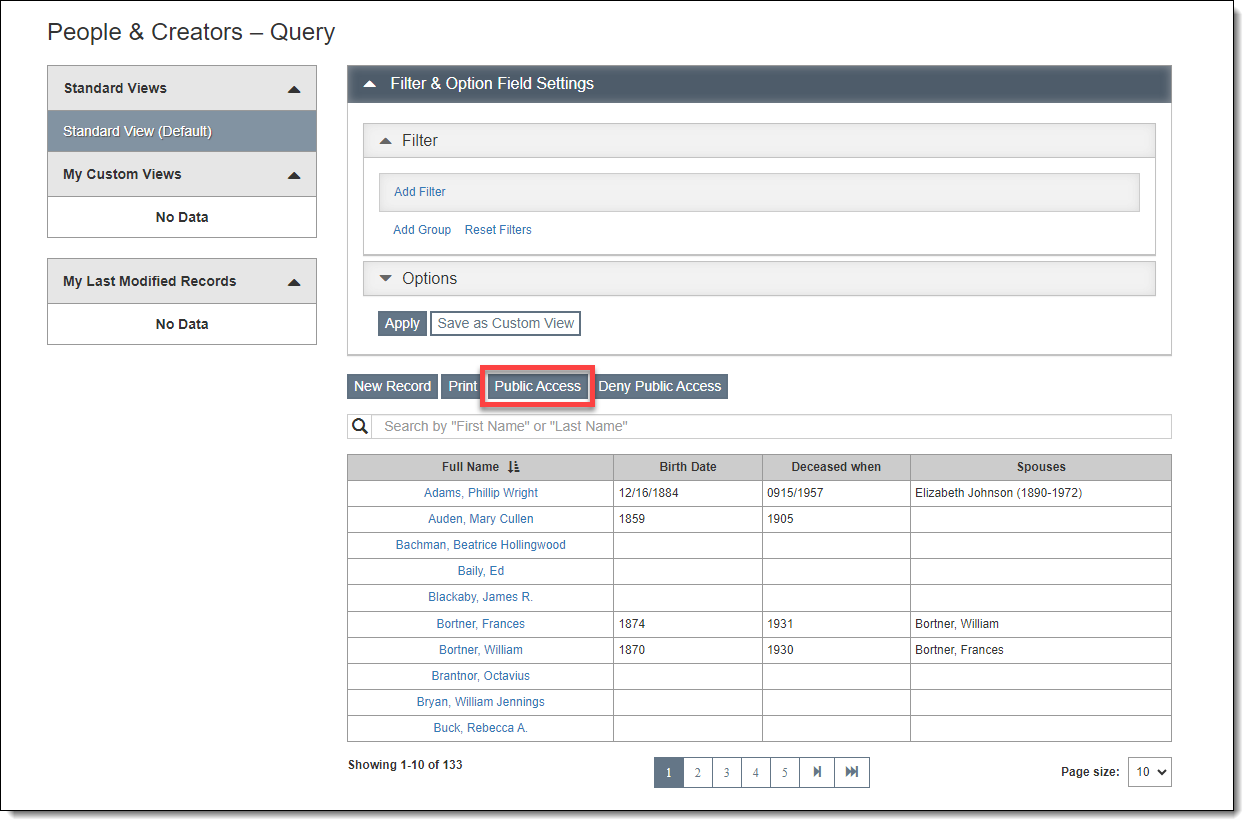 2.Click the "Public Access" button to select all resulting records for Public Access