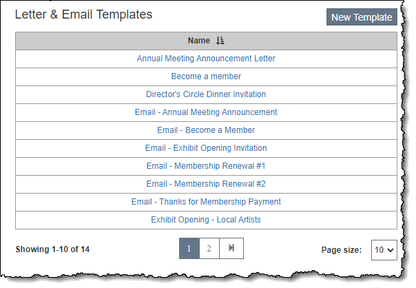 Letter & Email Templates, under Settings | Contact Settings, allows you to create mail merge letters and emails. You can send these documents to one individual contact or use them for a bulk mailing. These templates may be used for membership renewal letters, donation solicitations, meeting announcements, invitations, membership campaigns, etc. (Please note: there are separate documents for Donation Thank You Letters, an In-Kind Gift Thank You Letter, a Pledge Thank You Letter, and a Pledge Reminder Letter.)