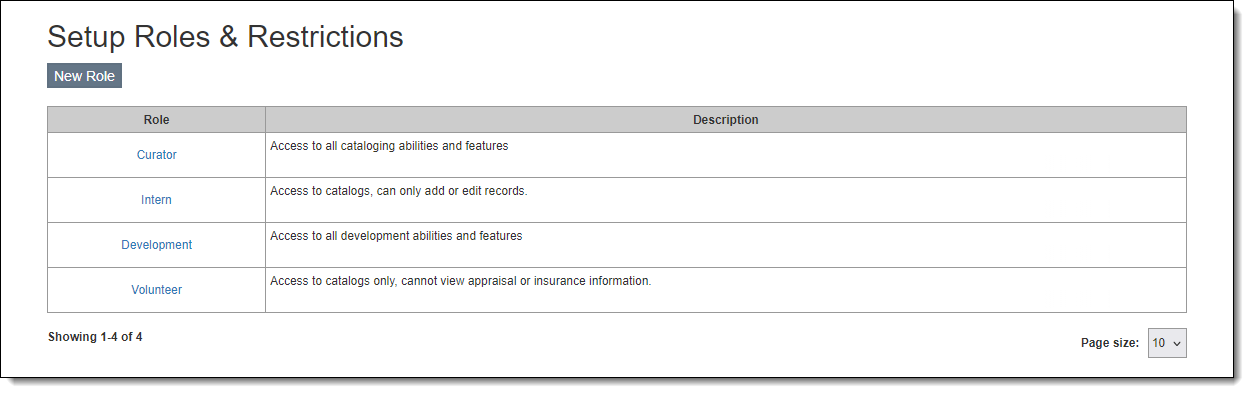 1.Click the "New Role" button on the Setup Roles & Restrictions screen