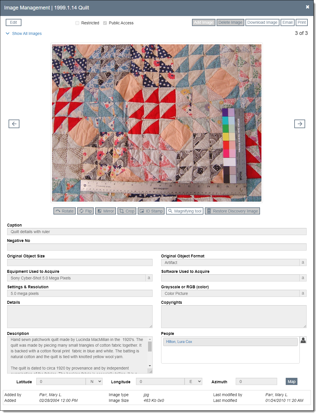 Images can be attached to catalog records, condition reports, exhibit