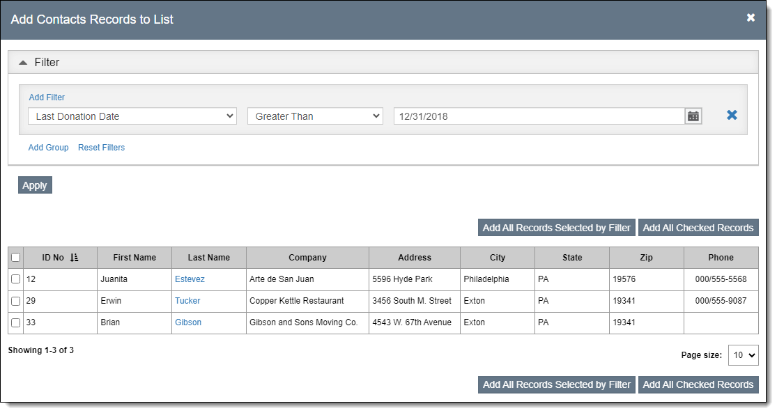 Use Filter to Add Records to Contact List