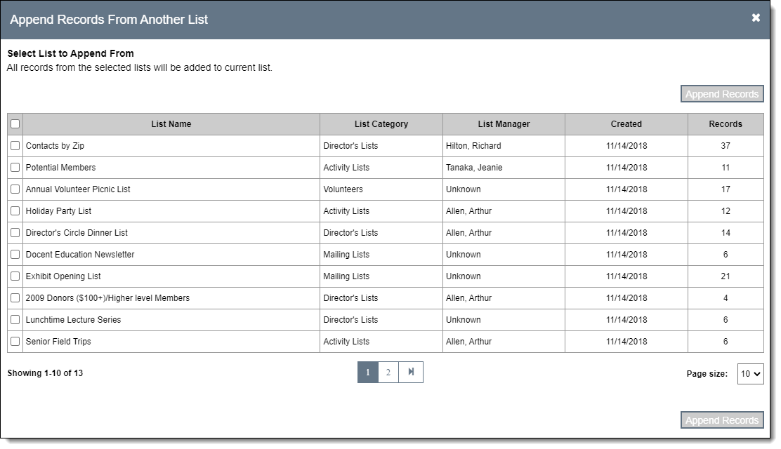 - Click "Append Records." The Append Records From